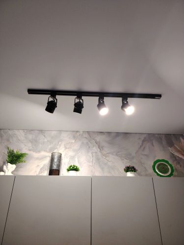 Установим трековый профиль, трековые рейки и светильники. Подключим к электричеству и настроим. Работа займёт 1—2 часа. Будет шумно.