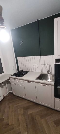 Соберём каркасы, навесим шкафы, дверцы и фурнитуру. Всё отрегулируем. Установим, мойку с сифоном и смесителем.